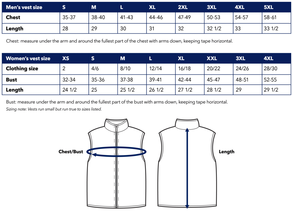 Puffer Vest Size Chart